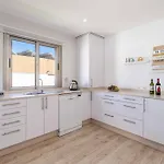 Eine komplette Küche in der Villa bietet alles, was man braucht, darunter eine Mikrowelle und ein Kühlschrank.